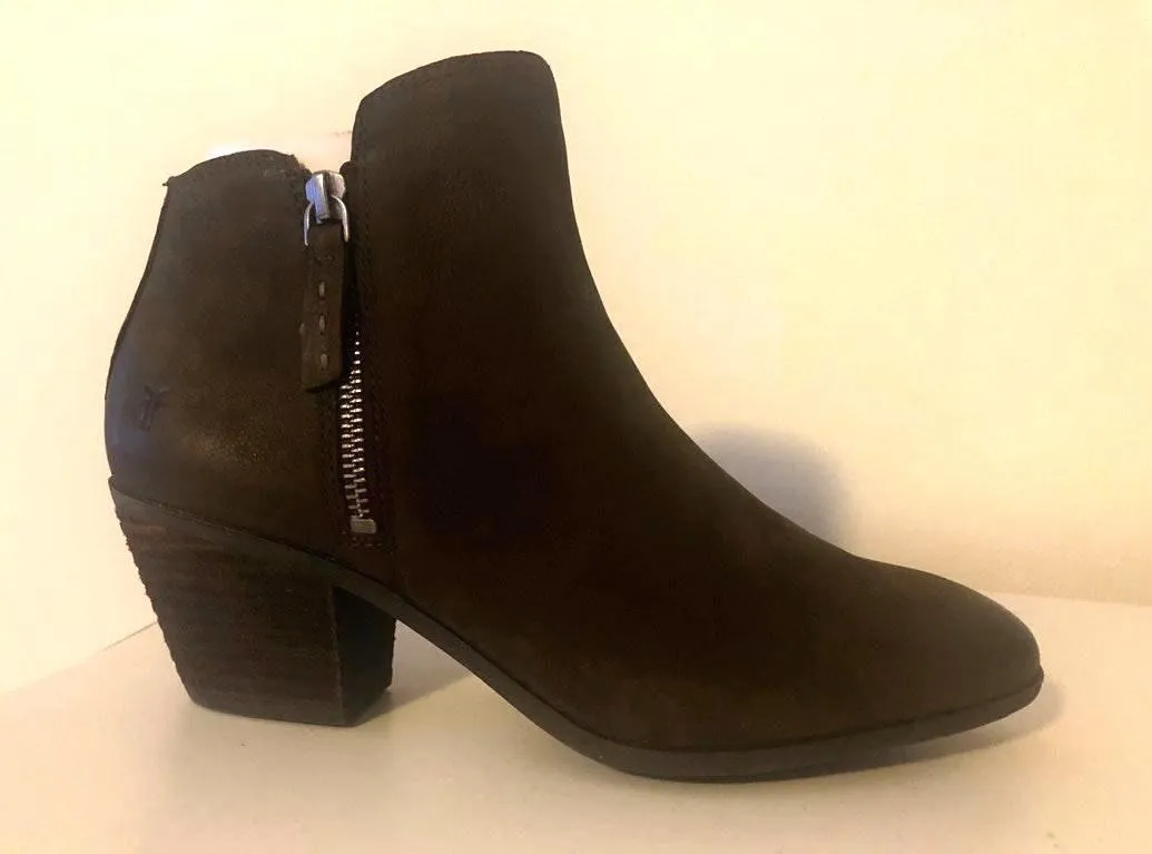 FRYE Women's Judy Zip Bootie in Dark Brown. Leather. Dual, side-zip closure. Textile lining with lea... Show more
