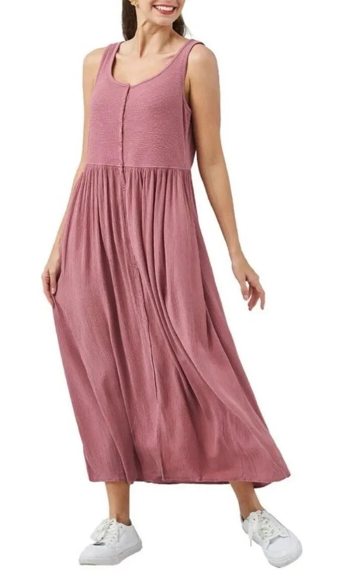 The Frye Ladies Button Front Midi Dress in size L is a stylish pink sundress designed for women. It... Show more