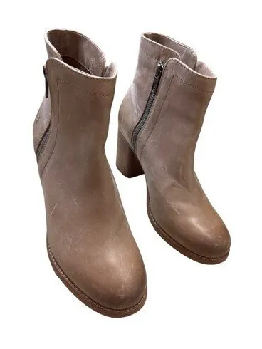 Chic and stylish Frye gray leather ankle boots with a comfortable 3-inch heel. Perfect for any fashi... Show more
