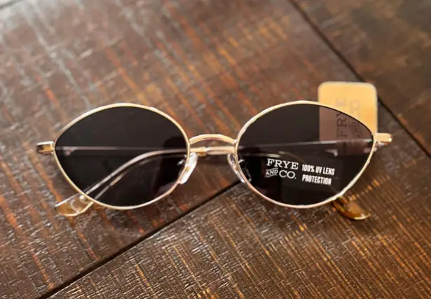 NWT: These Frye women's sunglasses feature sleek oval frame fronts in a classic gold color. The scra... Show more