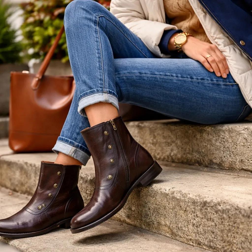 Frye Women's Phillip Military Zip Boot Dark Brown Leather Size 37 Logo buttons add military-inspire... Show more