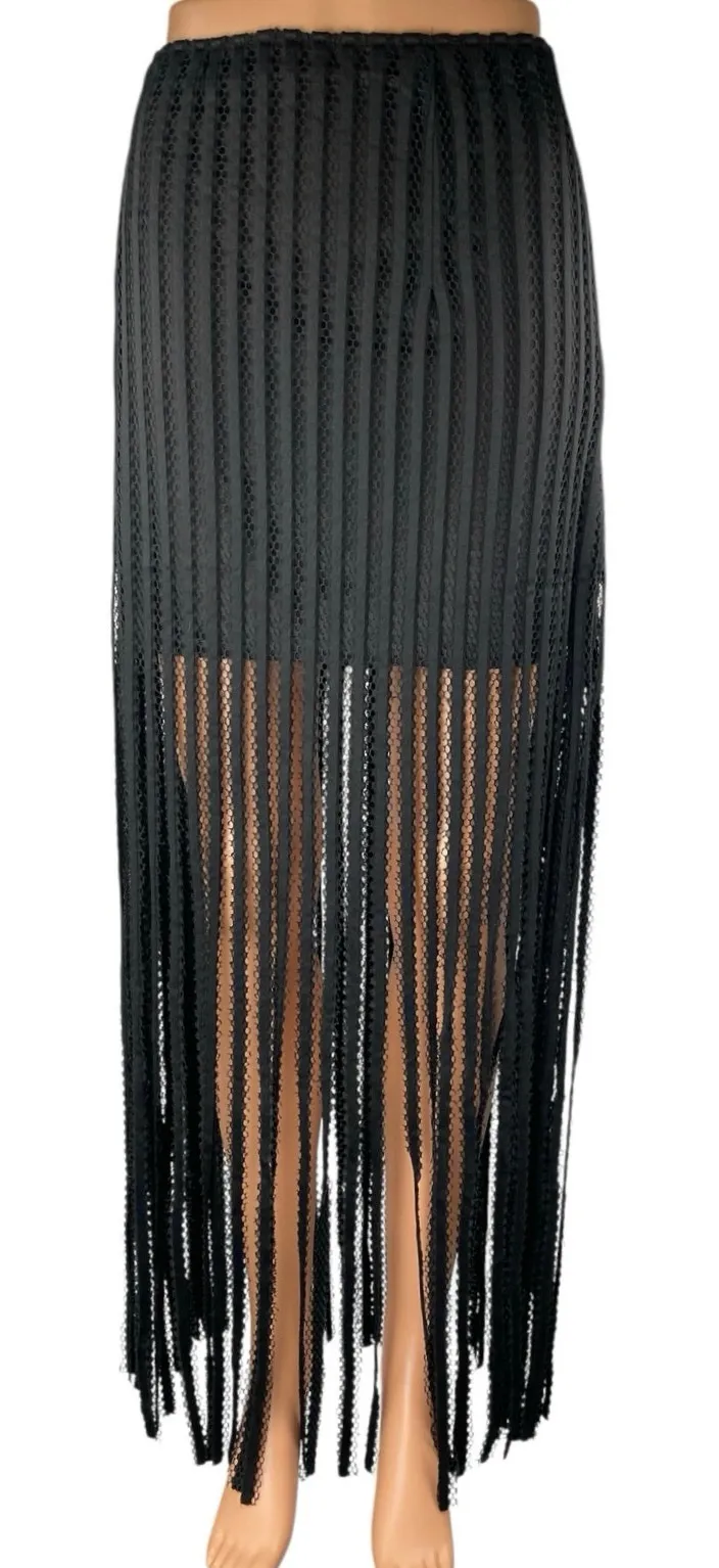 Ft Inc Black Ribbed Knit Fringe Trim Boho Maxi Straight Pencil A-Line Skirt Size M Size: M Condition: Like New Waist: 31” Length: 44” *Measurements are taken lying flat. We double the flat lay measurements of the waist. ** If displayed on a mannequin, the size is small; if on a plus-size mannequin, the size is extra large.