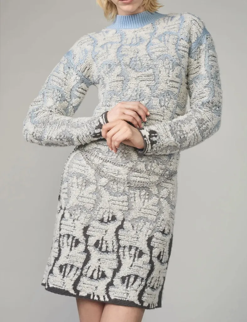 Fully Fashioning Kora Jacquard Knit Sweater Dress Size SX Blue - $206 - From Yosanny
