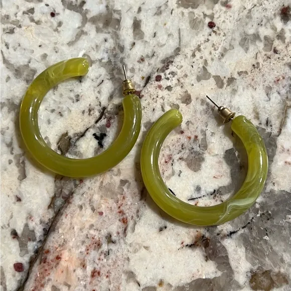 Fun Fashion Jewelry Marbled Olive Green Acrylic Round Hoop Earrings - $14 - From Michelle