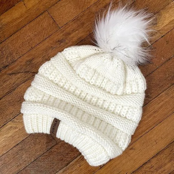 Furtalk white winter hat pom pom warm cold weather took beanie comfortable knit - $24 - From Joanna
