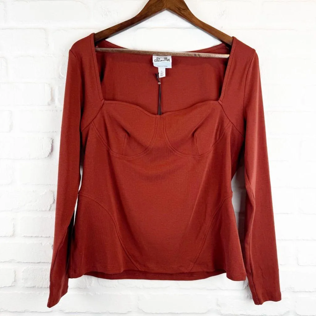Sweetheart Corset Top by Future Collective x Reese Blutstein Color: Rust Brown Size: XL P2P: 17.5" Length: 21.5" New With Tags in Excellent Condition 92% cotton (5% recycled cotton), 8% Spandex