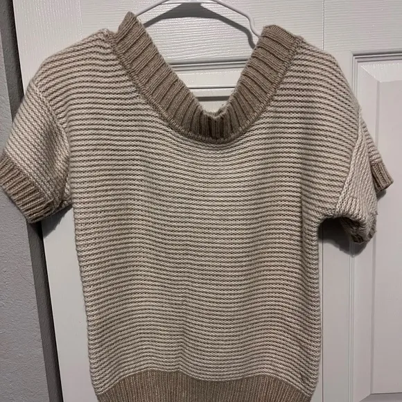 American eagle brown and beige striped off the shoulder short sleeve sweater in good condition size... Show more