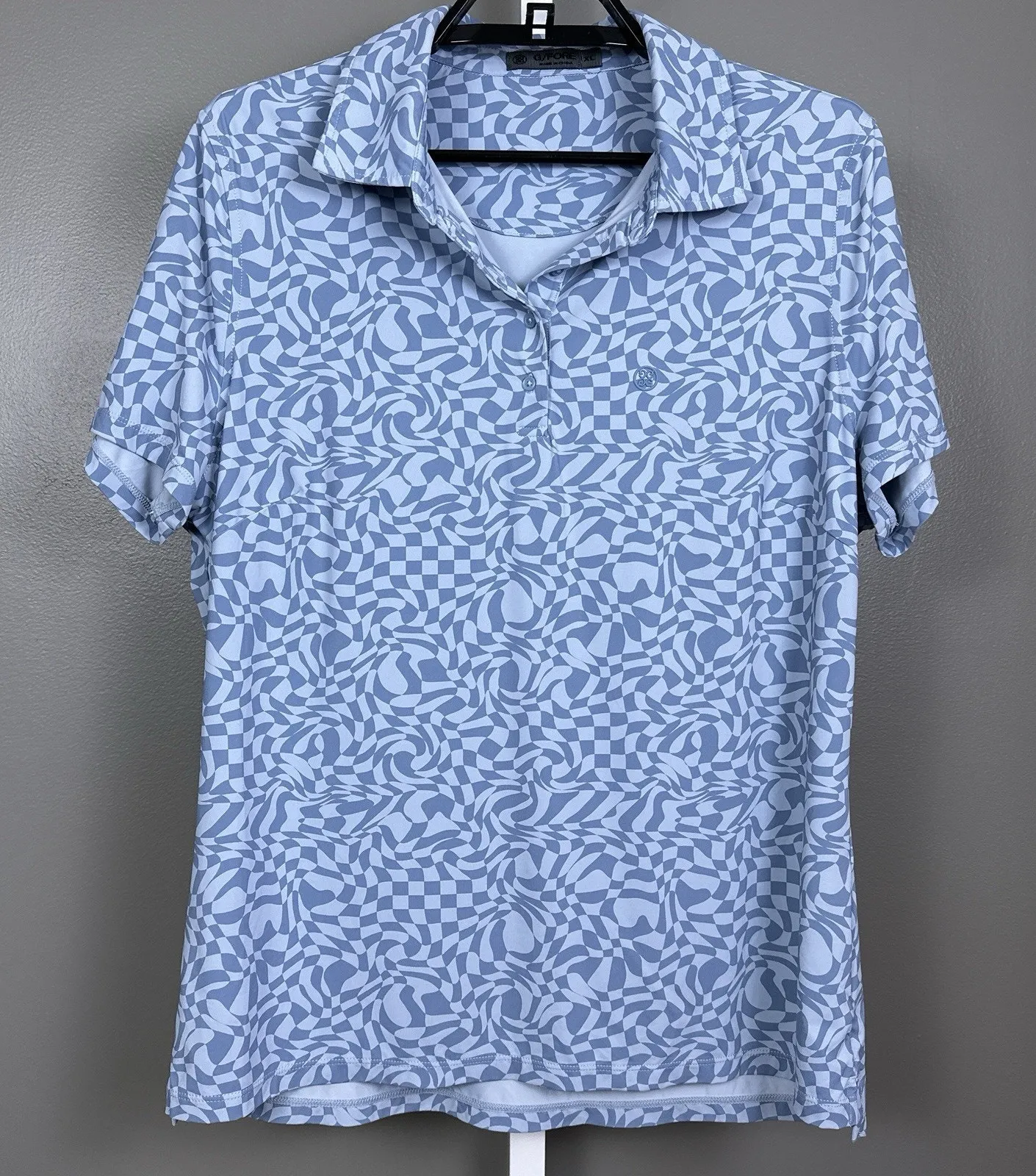 Listed is a G/FORE Womens Distorted Check Silky Tech Nylon Polo Fjord in size XL. Made from an ultra... Show more