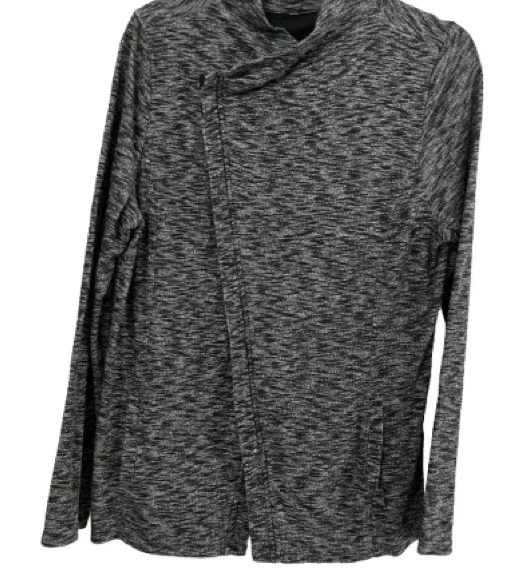 Great G H Bass & Co Lightweight Athleisure Jacket. Has an asymmetrical zipper in a black and gray heathered style. From pockets. French terry. Soft and comfortable fabric. Ideal for layering. French terry type fabric. Heather 49 poly 36 viscose 15 cotton blend washable Super soft Lightweight Excellent condition Gently worn Measurements while laying flat Pit to pit 20 inch Athleisure Comfy Cozy loungewear Scandi girl Effortless Fall Winter