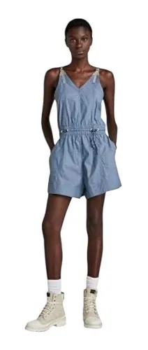 NWT-GSTAR RAW-BLUE ROMPER-SIZE SMALL Brand new blue chambray romper, elastic waistband, two hand pockets, adjustable straps that tie in back Bust: armpit to armpit 18 inches - $75 New With Tags - From Sherri