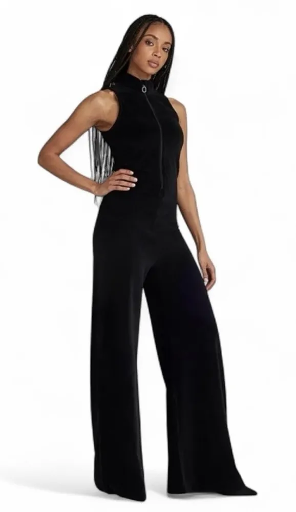 See pictures for measurements. NWT This women's jumpsuit from G-Star RAW combines casual style with high comfort thanks to a cotton blend with stretch. The wide-leg cut ensures freedom of movement, while the turtleneck adds a modern touch. Ideal for a relaxed yet stylish look. Jumpsuit Velvet offers a sleeveless suit. The top is fitted and shows a raised collar with an extended front zipper. The bottom section shows a wider fit from the hip down, creating a flared leg. Features: Loose Fit. Raised collar. Reduced shoulder width, sleeveless. Fitted at the top, wider through the legs. Zipper closure. Fabric information: This stretchable velvet is created out of a cotton/ poly blend to create a soft touch and matt sheen. The elastane adds stretchability to this fabric and strengthens the shape. Knitted velvet. Soft touch, matt sheen. 80% Cotton, 18% Polyester, 2% Elastane.