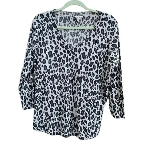 JOIE CHYANNE LEOPARD PRINT CASHMERE V-NECK SWEATER Gray - $58 - From Justine