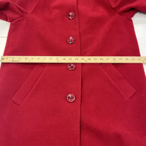 Appleseed's Petites Women’s Red Wool Pea Coat Size 16P. A pretty medium red in color. New with a flaw. Does have a line across the bottom portion of the coat as shown in the photos. Dry clean only Measurements are included in the photos.