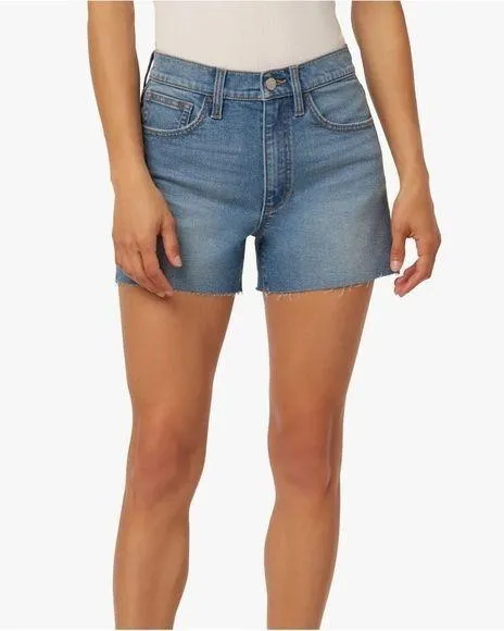 A faded wash and raw cut hems bring vintage vibes to these high-waisted denim shorts. Size: 29 Colo... Show more