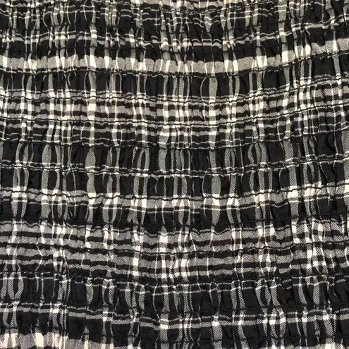 New With Tag Dress features black and white plaid pattern. 3/4 balloon sleeves, rouched bodice and f... Show more