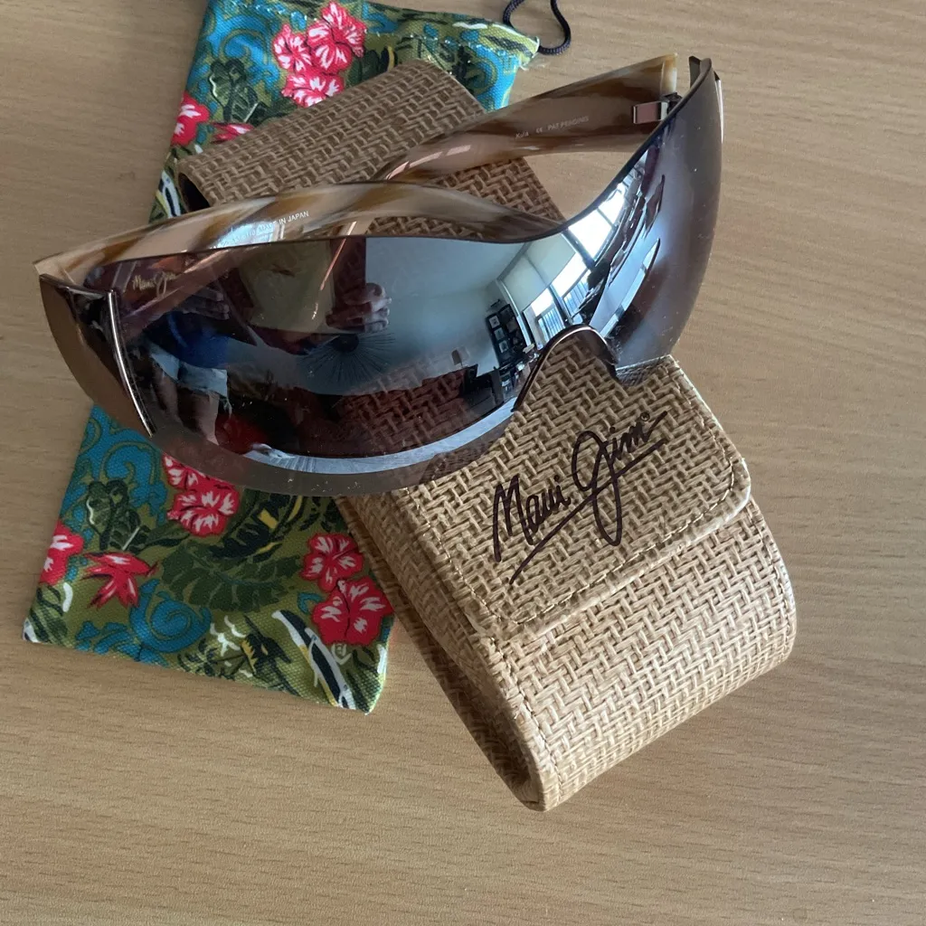 Frame Wrap-style sunglasses feature a sleek gloss copper frame that complements the sophisticated polarized rose lenses, offering both a timeless look and excellent UV protection. Chic Maui Jim sunglasses Ideal for stylish sun protection. Maui Jim Tortoise Copper Stripe Frame - Bronze Polarized Lenses Frame Color - Tortoise Copper Stripe Style - Full wrap sunglasses sunglasses are in pristine condition Lightweight 100% Protection UV Rays Lens Material: SuperThin Glass lenses provide the crispest optics available. Lens Features: PolarizedPlus2 Maui Jim Sunglasses with PolarizedPlus2 technology eliminates glare and boosts colors with a patented multi-layer design Comes with the Maui Jim Hard Case and microfiber cleaning cloth