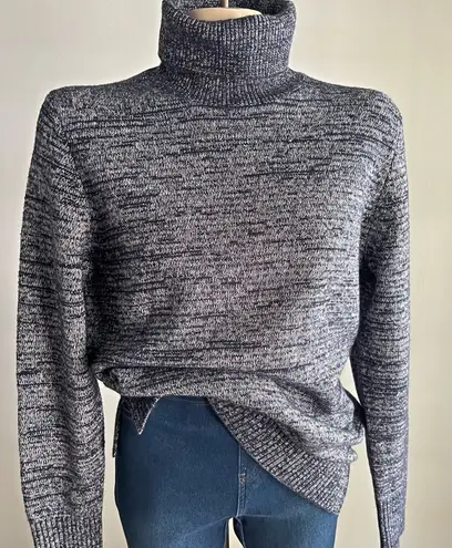 New with tags J.Crew Mercantile marled turtleneck sweater in a navy and white mix. Features a soft ribbed knit with a cozy foldover turtleneck and a relaxed, modern fit. Ribbed trim at cuffs and hem, with subtle side vents for ease of movement. Perfect for cool weather layering or casual workwear looks.