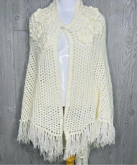 Hand made crochet knit floral Shaw coat cottage core / grandma core one size Size L - $50 (58% Off Retail) - From Sara