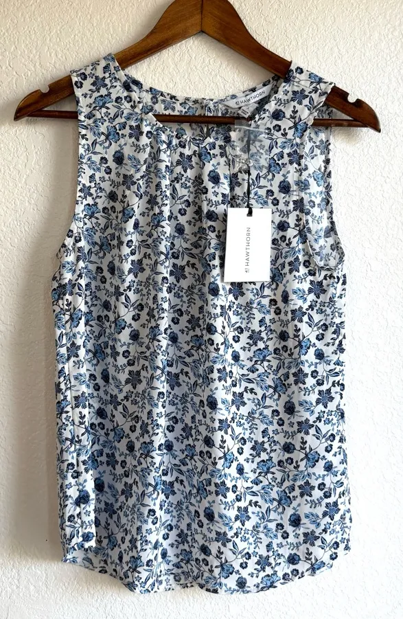 NEW 41 Hawthorn Womens Shirt Blouse Blue White Floral Sleeveless Size Small - $32 New With Tags - From Maria