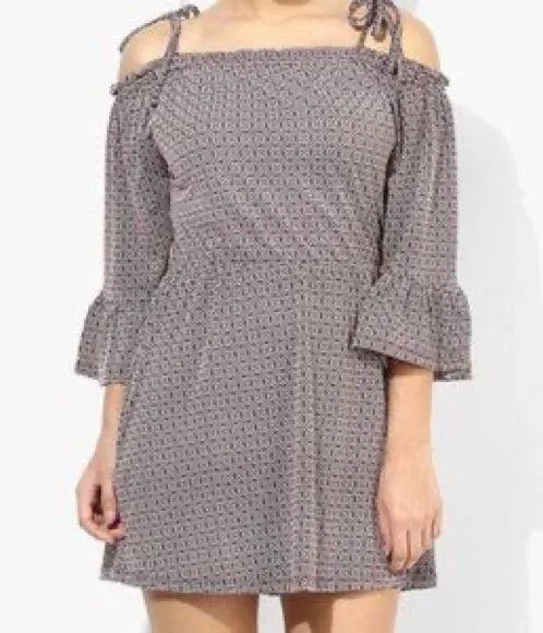 Topshop off the shoulder flutter Sun dress with bell sleeves NWT, size 12 Off white with burgundy p... Show more