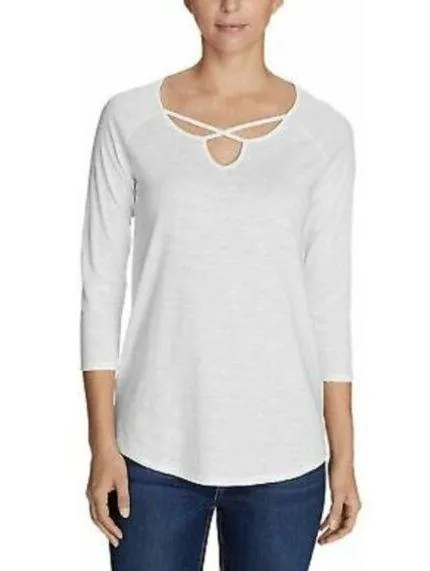 Eddie Bauer White Criss Cross Neck 3/4 Long Sleeve Top Very good used condition, minimal signs of w... Show more
