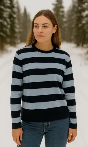 100% cotton - natural fibers! Size Large Rugby style Striped Navy and light blue Small flaw note... Show more