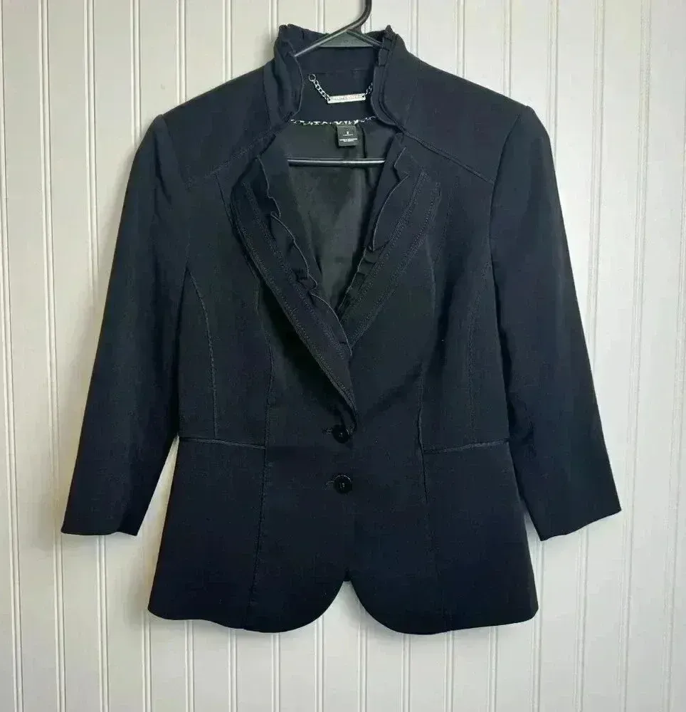 White House/Black Market 3/4 sleeve 2-button blazer ruffle detail Size 2 Bust 18” across In good... Show more