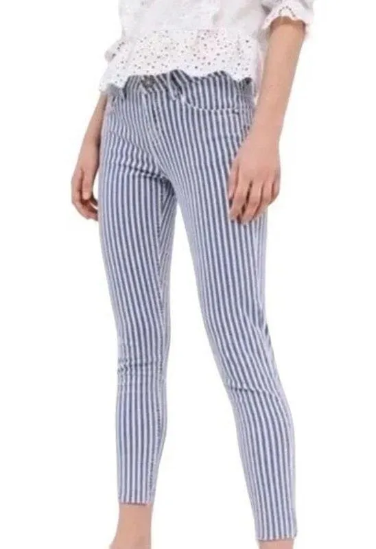 Zara Basic Z1975 Denim Jeans Womens Size 12 Blue White Striped Ankle Raw Hem Stretch Excellent pre-... Show more