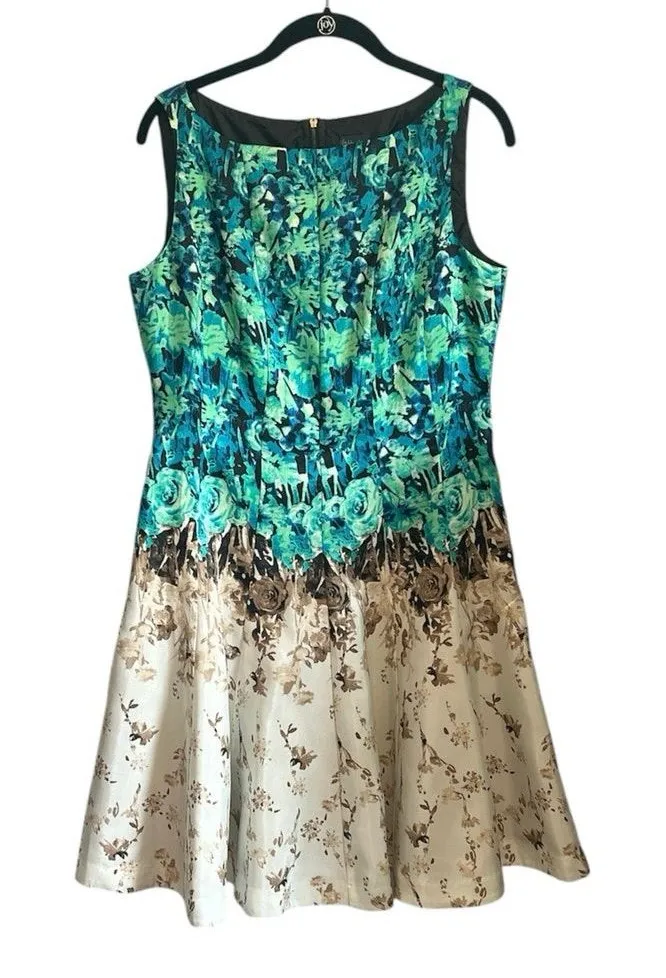 Gabby Sky Fit and Flare Sleeveless Ombré Floral Dress. Size 8, EUC - Sleeveless - Ombré from green to light brown to white - Flowers - fully lined - Full skirt - Zipper back Excellent used condition Tags: wedding, wedding guest dress, bridal shower, cocktail, dressy, spring, summer, fall, winter, sleeveless, no sleeves, tank top, fit & flare, flowers, floral, casual, special occasion