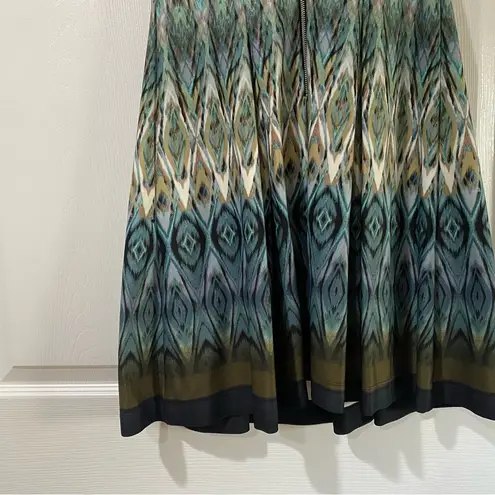 Stylish sleeveless dress with a geometric pattern. Features shades of green, blue, and black. Gabby Skye V-Neck Fit & Flare Teal Diamond Scuba Dress Sleeveless 6 In excellent pre owned condition make me a reasonable offer!