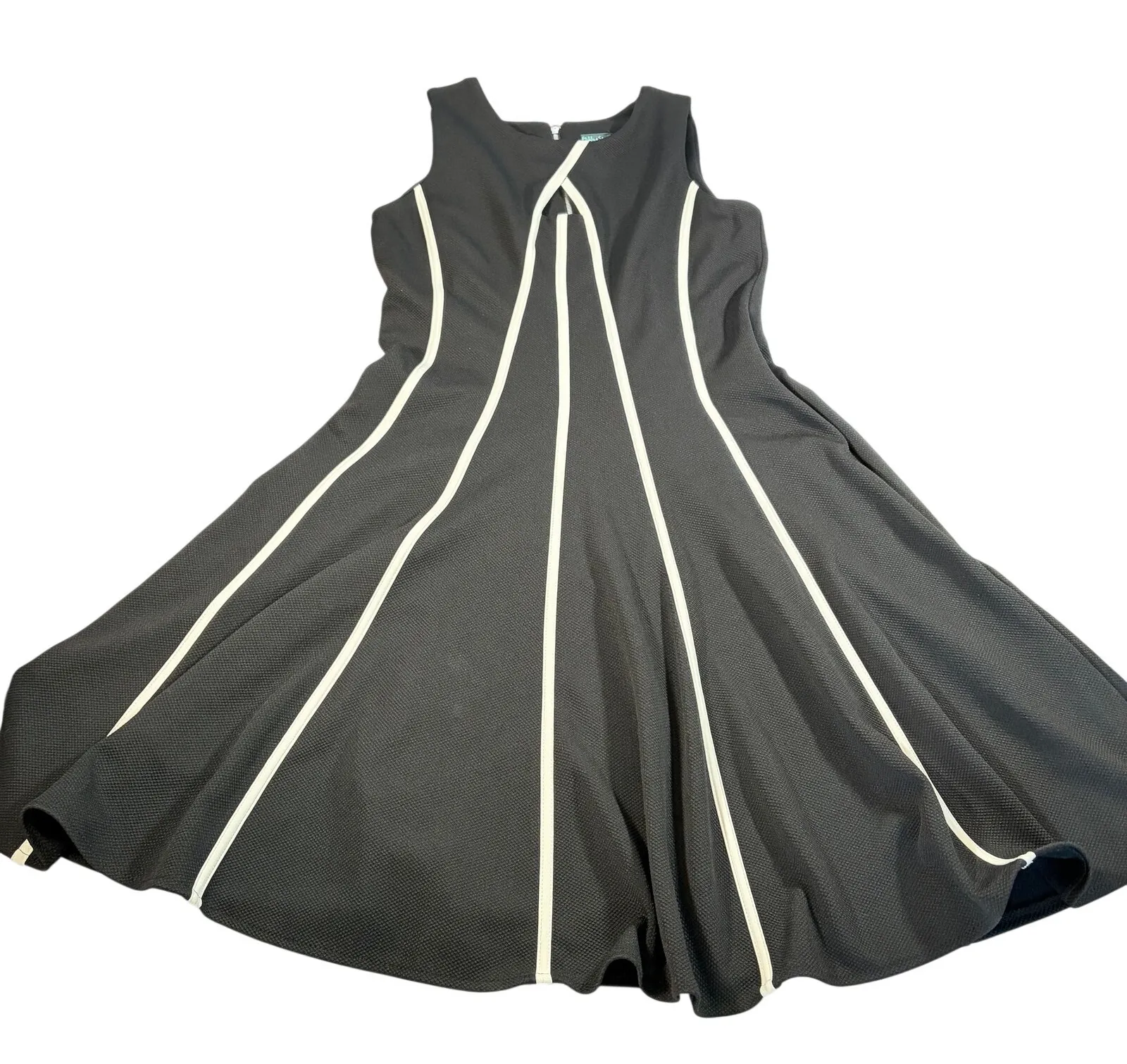 Gabby Skye womens black fit and flare dress with white vertical stripe detail. Size 4. keyhole fr... Show more