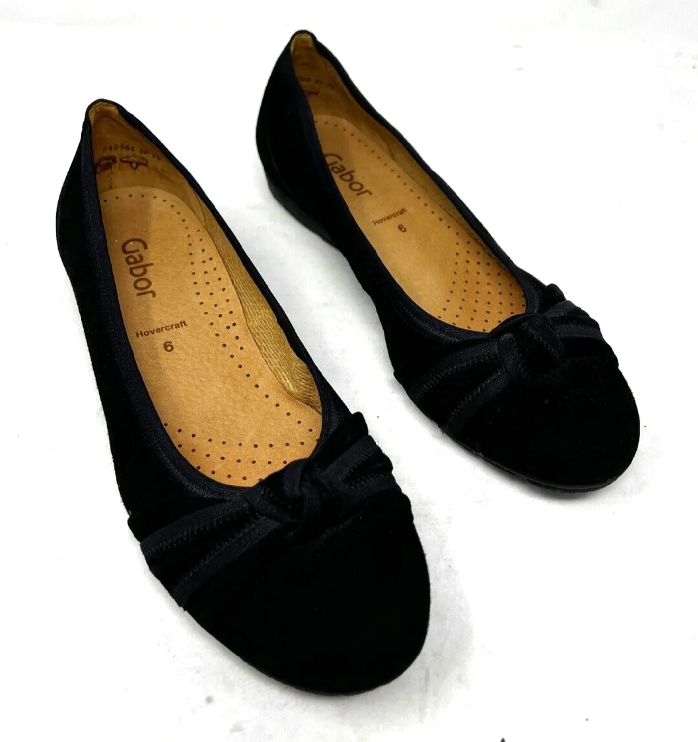 Gabor Loafer Hovercraft Laura Look Lovely Suede Leather Ballet Women Black 6 Condition: Good Preowned Condition! Lovely foot glove slip-on shoes are suede leather they have a bow to the front of them very dressy. Flat Shoes Ballet-styled suede upper. Imported