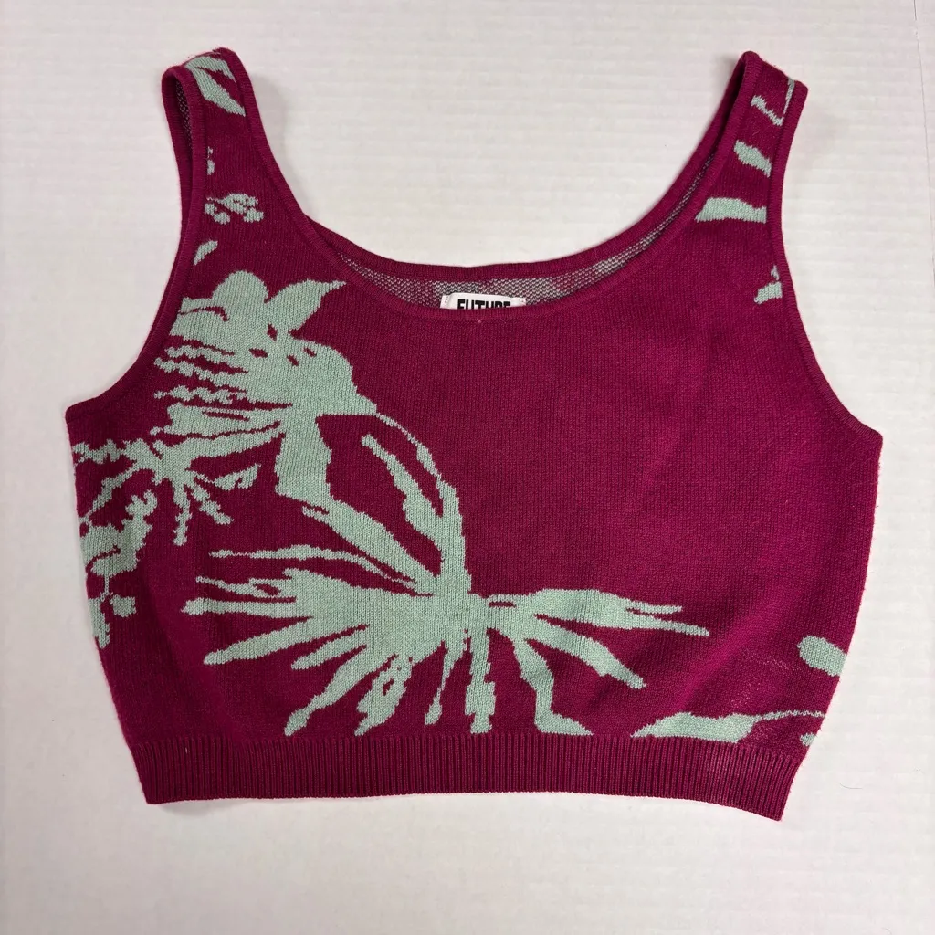 Gabriella Karefa Johnson Future Collective Maroon Blue Floral Knit Crop Top XS - $12 - From Melissa