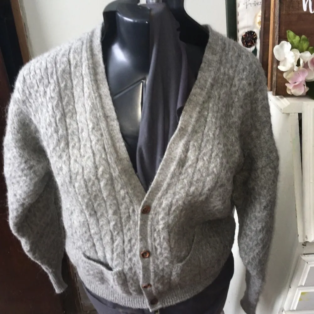 Irish knitworks, gray cable slouchy grandpa sweater. Felted, thicker feel. In good, used condition. Approximately 23 inches from armpit to armpit, 21 inches long. From a pet and smoke free house. Happy to bundle