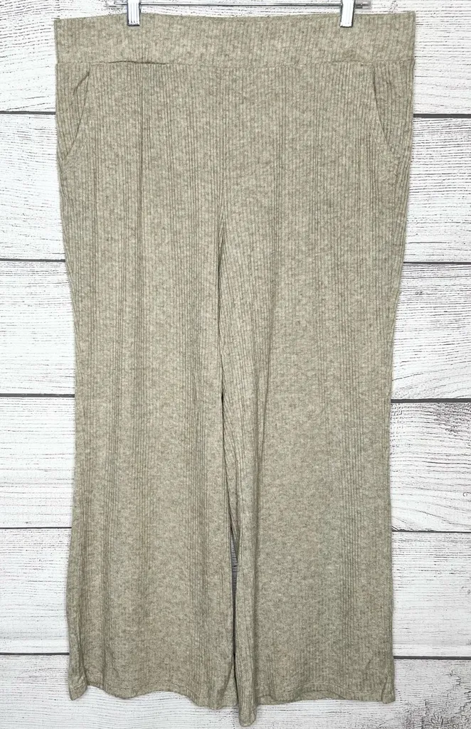 GAIAM Beige Ribbed Knit High Waist Wide Leg Pants Size XXL Yoga Lounge Comfy Approximate flat lay... Show more
