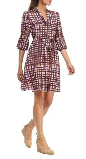 Gal Meets Glam | Lindsey Painted Windowpane Tie Neck Dress | 00 A carefree look that goes from desk... Show more