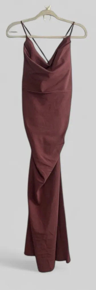 GALINA signature new with tags rose plum colored formal dress full length maxi size 20 long fitted gown with lace up Chianti CHIANTI retail $190 David’s bridal. Stunning adjustable lace up straps so the length can be somewhat adjusted as it is right now measures well over 60 inches measures 57 inches without any of the strap at the top 19" or more across the chest The waist is 18 inches. The hips approximately 20 to 21 inches this is lined and there is a good bit of stretch to the material partially lined polyester spandex