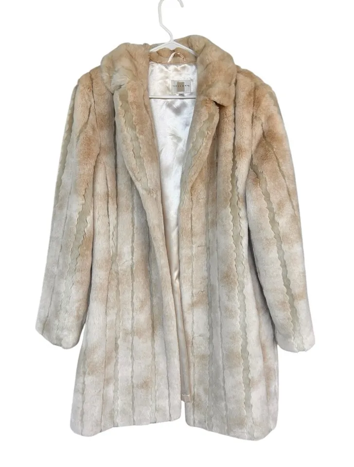 Gorgeous coat in good condition Measurements in pictures, review carefully. Teddy, luxurious, faux fur, cream, beige, tan Holiday parties, Winter warmth, cozy, warm I don’t see any flaws
