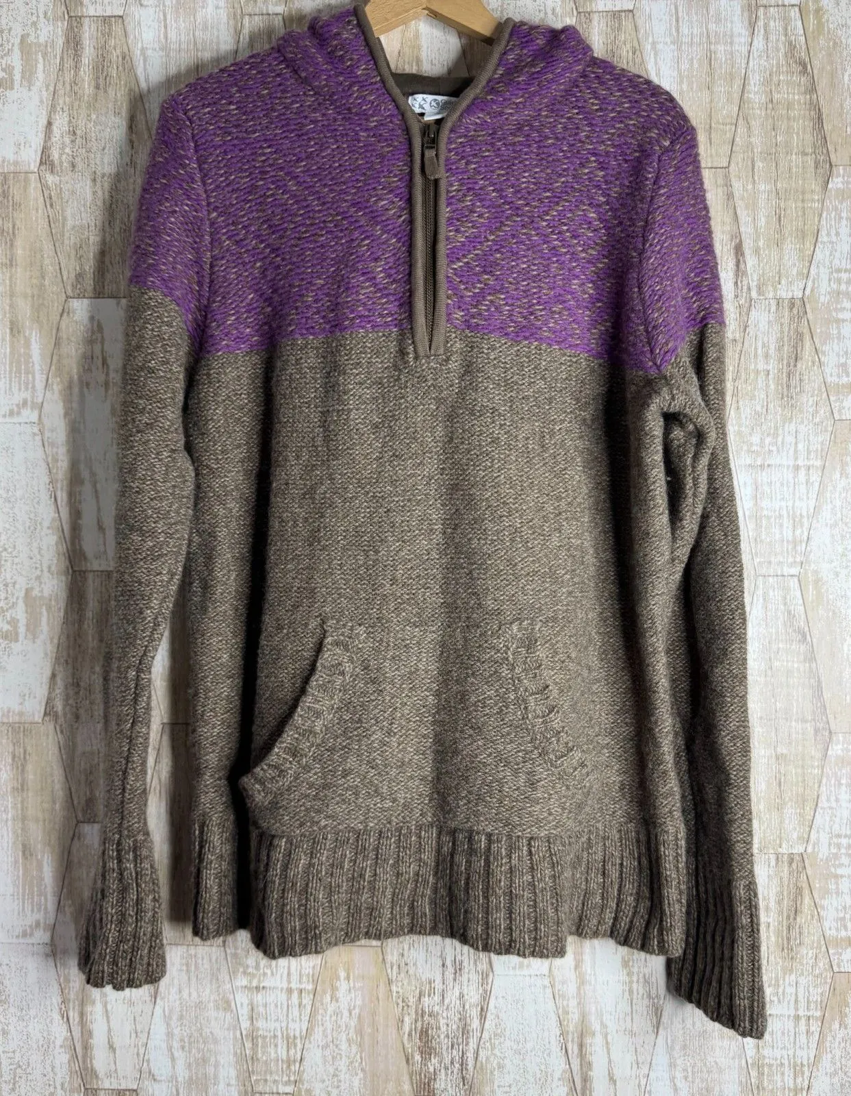 Gander Mtn Guide Series 1/4 Zip Hooded Wool Blend Sweater‎ Purple XL Lagenlook Brown - $20 - From C