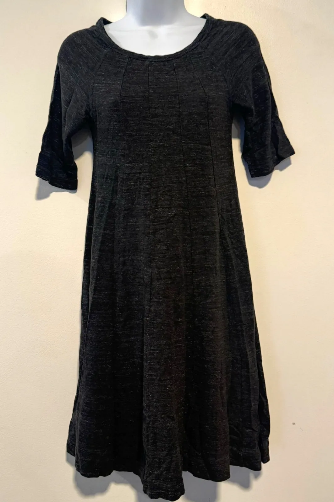 Elevate your wardrobe with this effortlessly chic Ganni Winter Jersey Dress. Crafted in Portugal from 100% cotton, this piece offers comfort and understated sophistication in a soft black marled knit. Perfect for year-round wear, it features a relaxed A-line silhouette, ½ sleeves with a gentle flare, and subtle seam detailing for structure and shape. Details: • Brand: Ganni • Style: Winter Jersey Dress (Programme 3192) • Color: Black / Charcoal • Size: Medium (M) • Material: 100% Cotton • Made in Portugal • Neckline: Scoop • Sleeve length: Half sleeves • Fit: Relaxed, flowy fit • Length: Approx. 32.5” shoulder to hem • Bust: Approx. 17” pit to pit (flat lay) • Condition: Excellent preowned condition — no holes or stains Style Notes: Perfect for minimalist, Scandi-chic, and quiet-luxury looks. Pair with boots and a denim jacket for a casual vibe or elevate with heels and accessories for evening wear. Keywords: Ganni black dress, cotton jersey dress, Scandi style, minimalist dress, made in Portugal, soft knit dress, Ganni medium, cozy cotton dress, quiet luxury