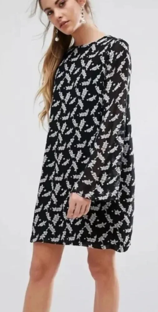 Ganni Seymour Georgette Dress in Winter Berries Long Sleeve Shift Floral printed long sleeve shift mini dress perfect for day-to-night Crew neckline with semi sheer flared sleeves Keyhole with button fastening at back Partially lined 100% Viscose Georgette Machine wash cold By Ganni Model in size XS, fits true to size. Model Measurements: Height 57, Waist 25", Bust 32", Hips 33" Fits true to size. FABRIC / MATERIAL 100% viscose georgette Preowned great condition. Perfect floral berry print for holidays! Flat lay Measurements (approximate) Chest 20.5 inches Sleeve from pit 18 inches Length 32 inches Waist 20 inches Width at hem 22 inches