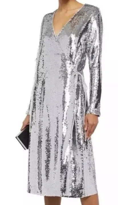 GANNI Sonora Silver Wrap Sequin Midi Dress cocktail party NYE 34 US 2 - $95 - From Hali