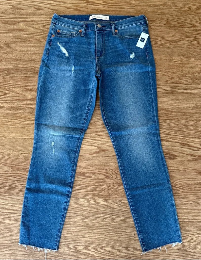 Gap 1969 Distress Raw Hem True Skinny Ankle Jeans in Women's Size 30R Key Features of this Style:... Show more
