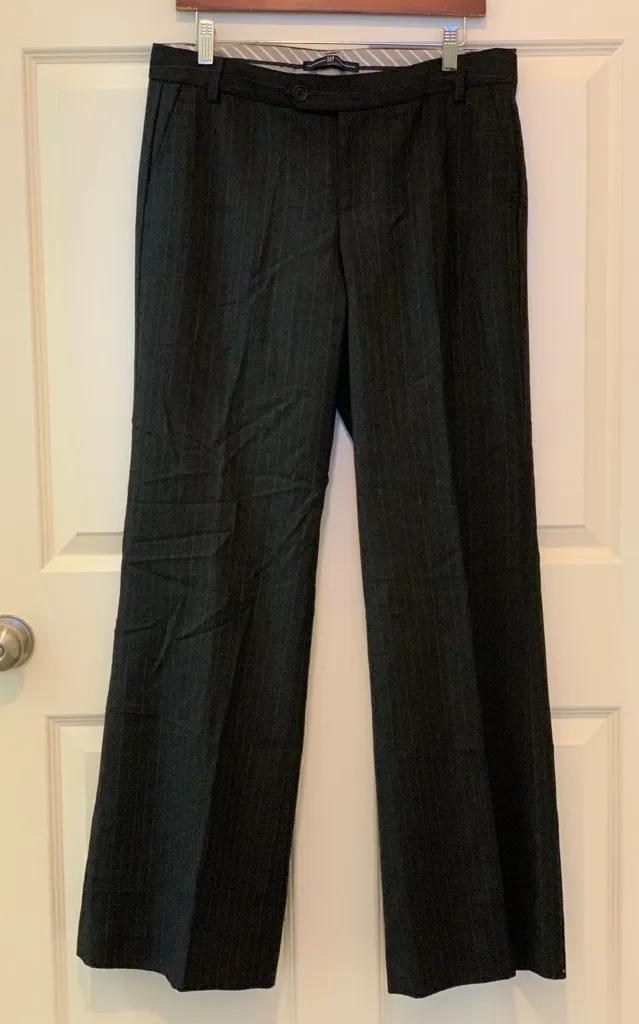 Preowned and in good condition! Chic Long black wide leg pinstripe pants by GAP. Versatile and styli... Show more