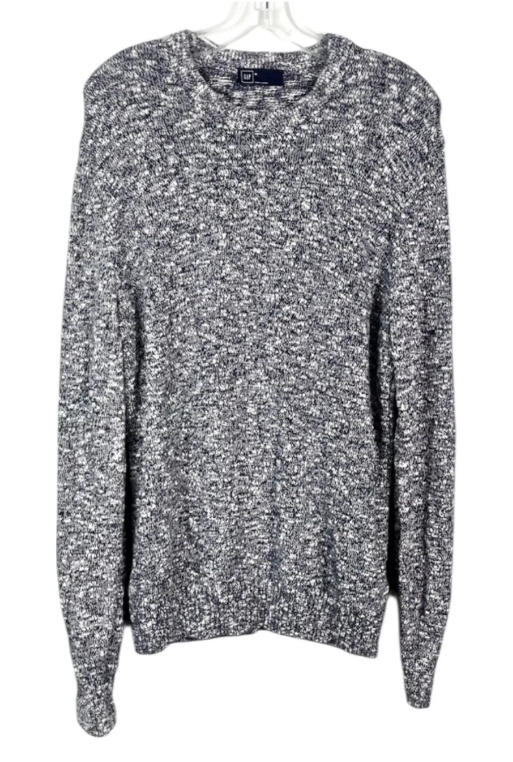 In good condition! Nice closet staple piece. Navy blue and white heathered design. Pullover style fi... Show more