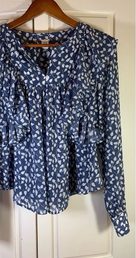 Gap Cottage Blouse Top Women Small Black Floral Print Ruffle Boho Semi Sheer