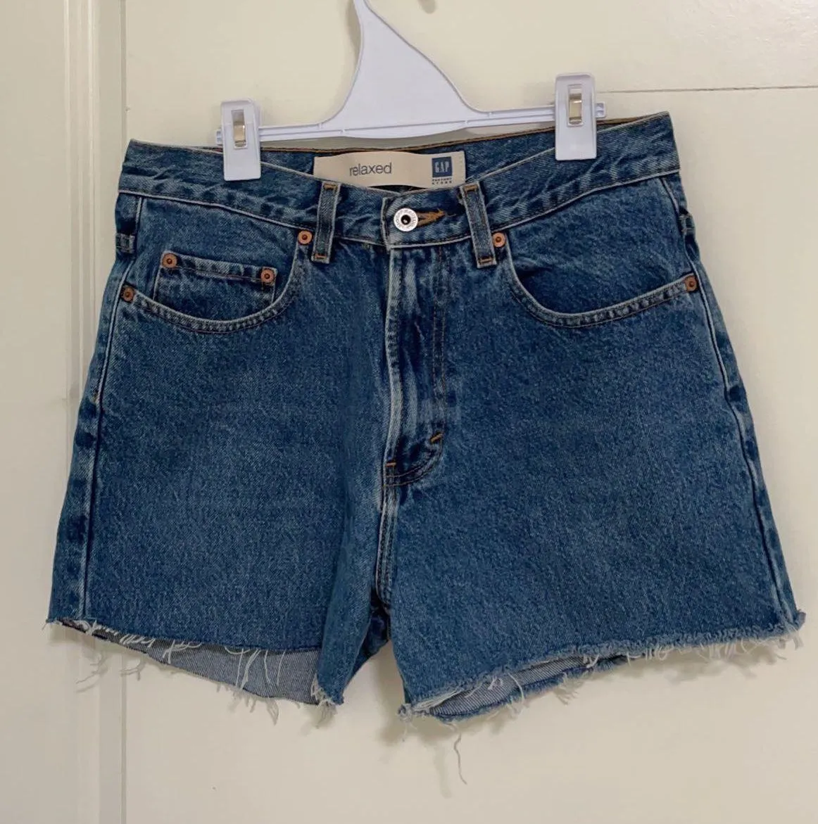 Gap relaxed fit blue cut off jean shorts - I think their around a 3” long