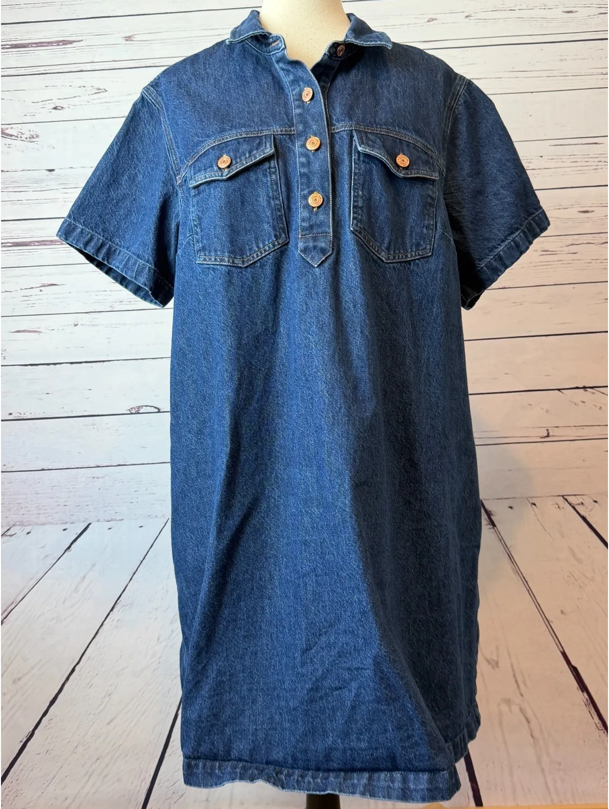 GAP Denim Dress Jean size XLT XL Tall Extra large. Popover Aline A-line Dark wash jeans short sleeve... Show more
