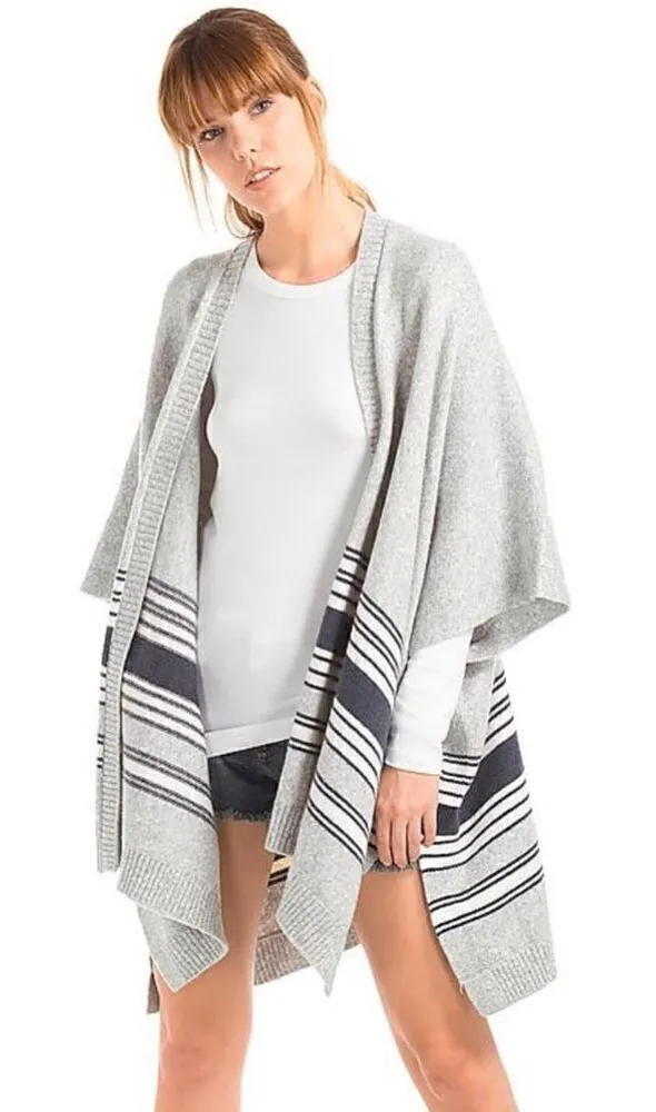 GAP Gray Western Wrap Poncho Cardigan Cape Wool Camel Hair Blend Blue Stripes Fabric content: Cotto... Show more