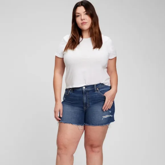 GAP 4" Short High Rise Low Stretch 4" jean shorts jorts distressed raw hem with washwell 5-pocket 35... Show more